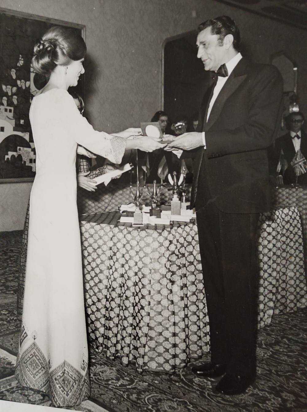 Šahova supruga Farah Pahlavi na festivalu u Teheranu uručuje nagradu Obradu Gluščeviću