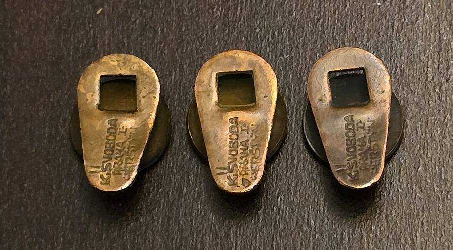 Značke Hajduka na poprečnu iglu iz 1930-ih. Izrada: Griesbach i Knaus Zagreb