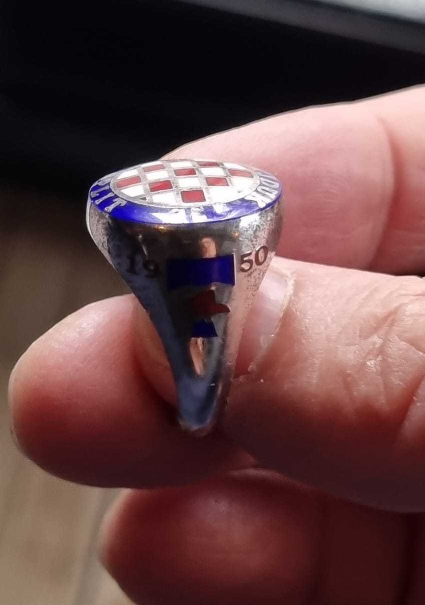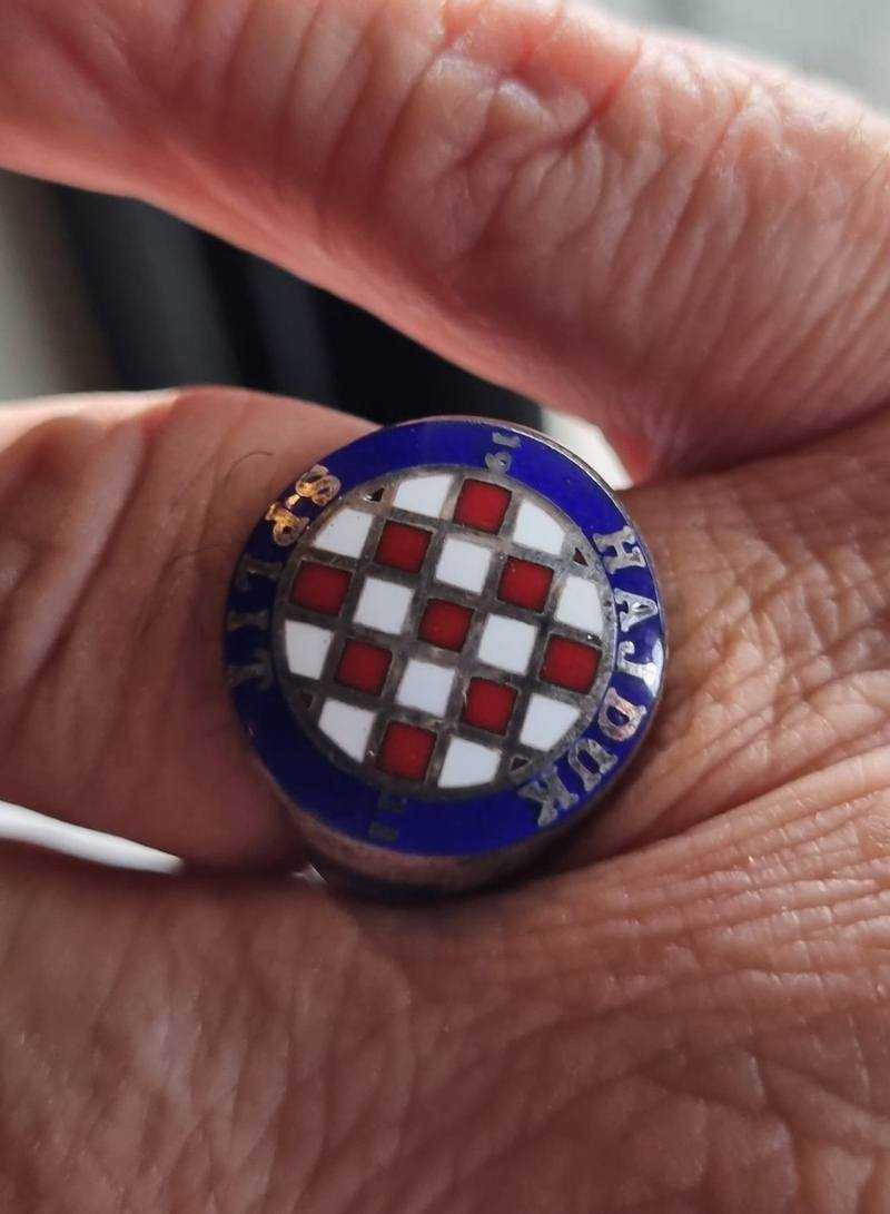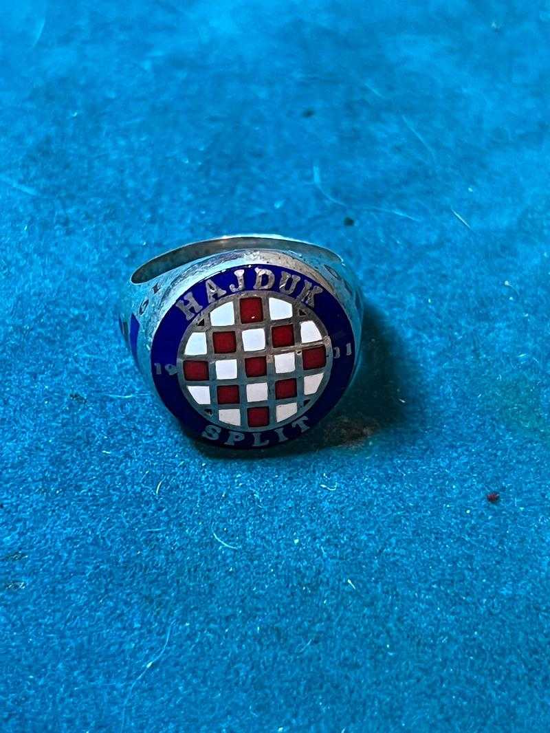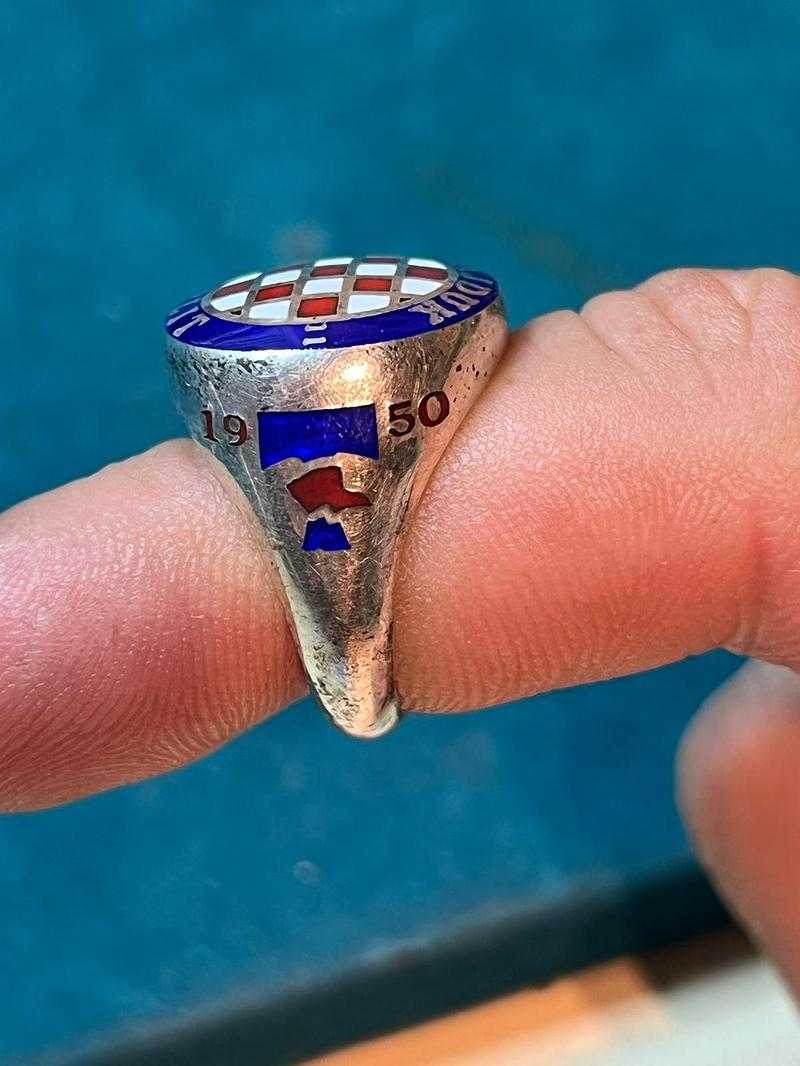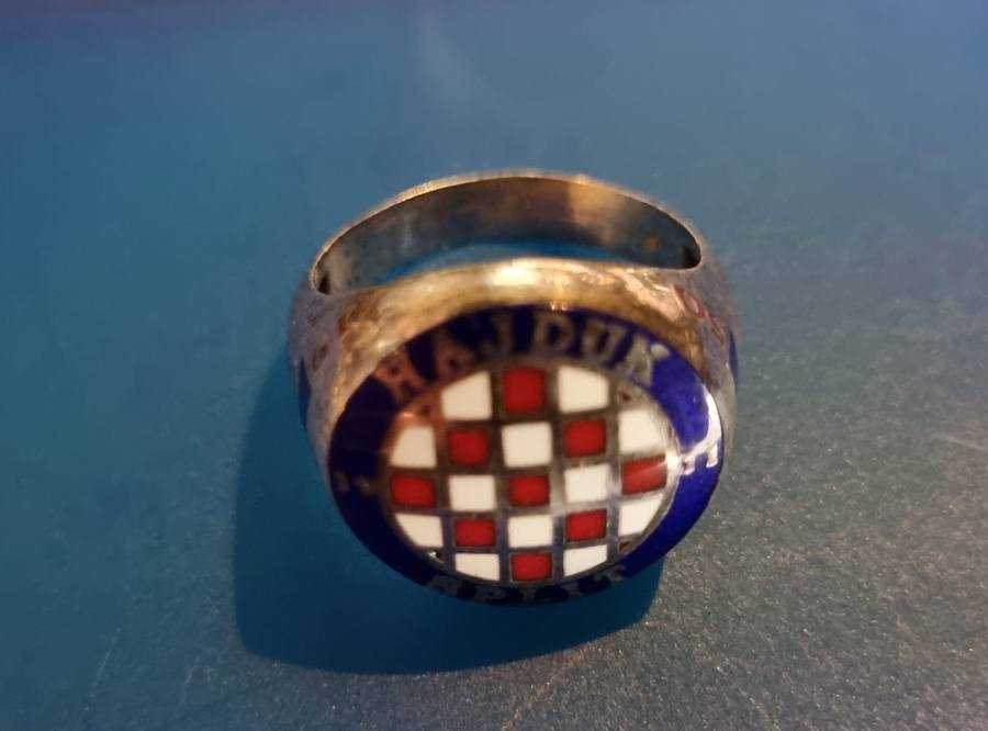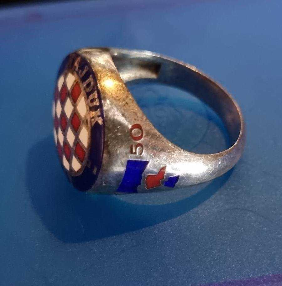 Srebreni prsten sa emajliranom šahovnicom i natpisom Hajduk Split 1911 povodom 50 godina Torcide