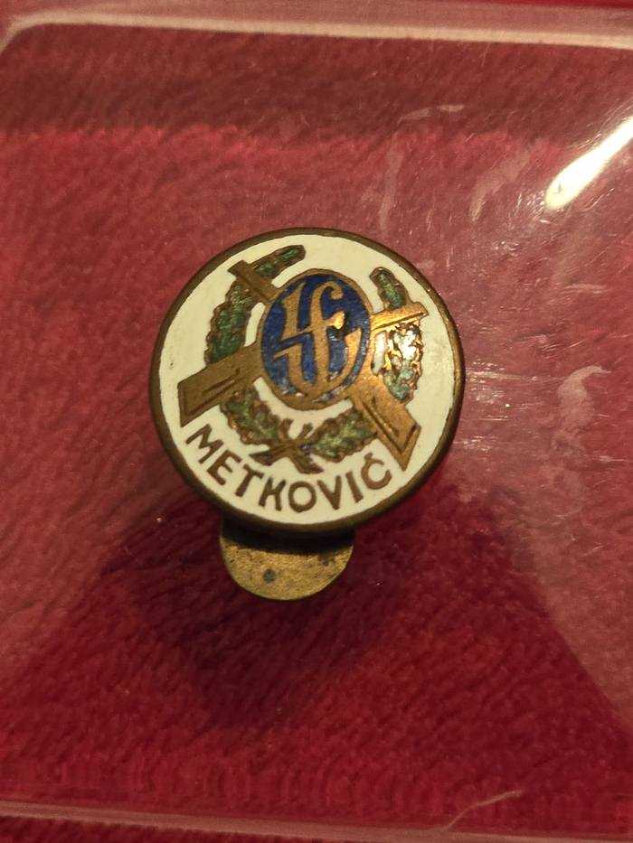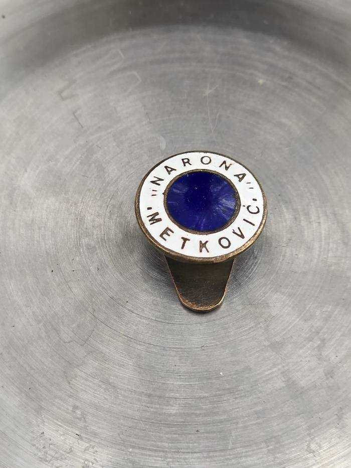 Prva značka na papučicu NK Narona Metković iz 1920-ih godina. Izrada: Draguljar S. Hajrić Zagreb
