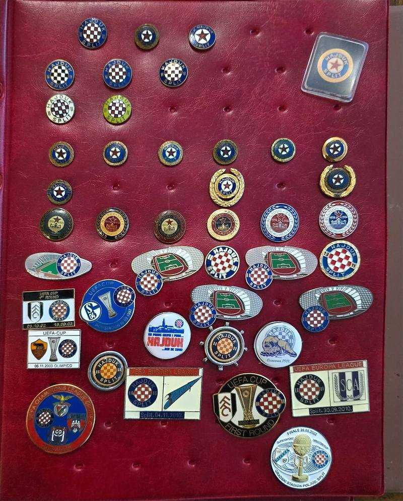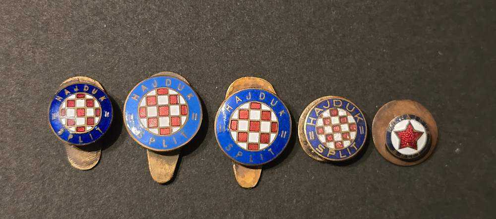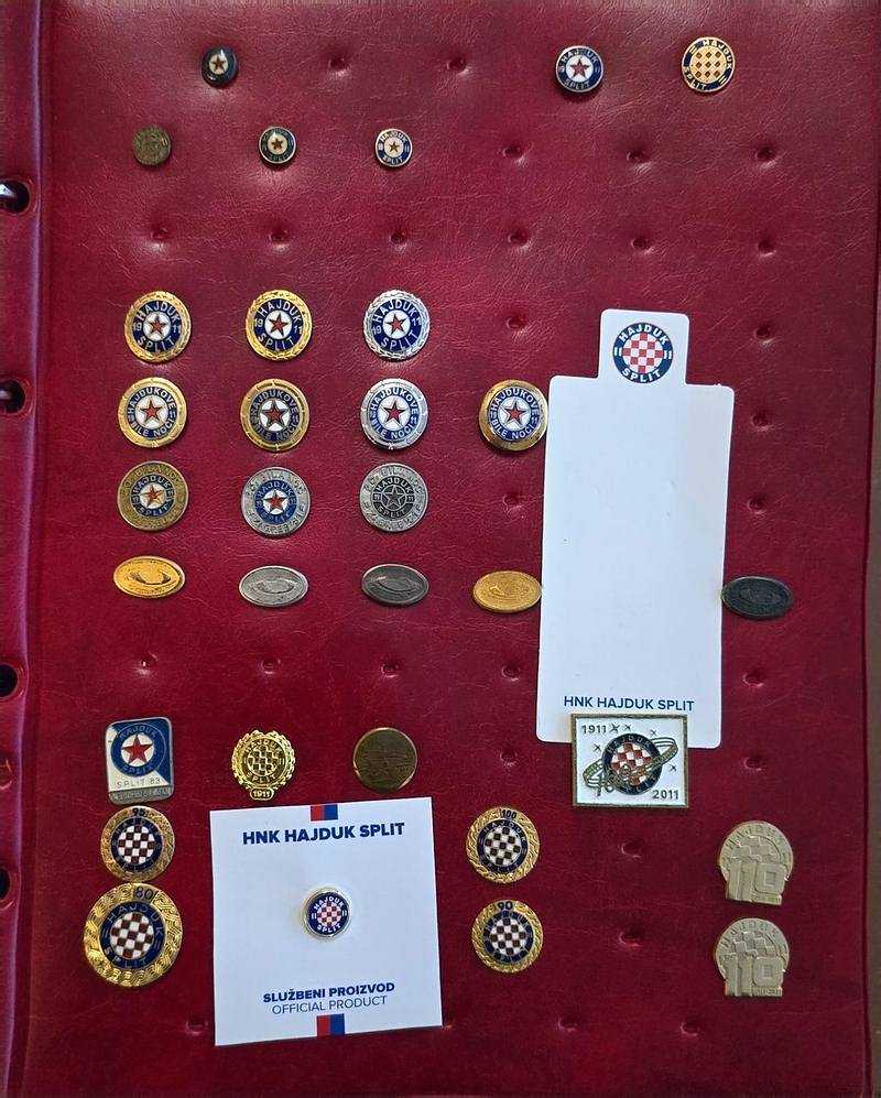 Dio oficijelnih značaka Hajduka iz zbirke Marija Talajića
