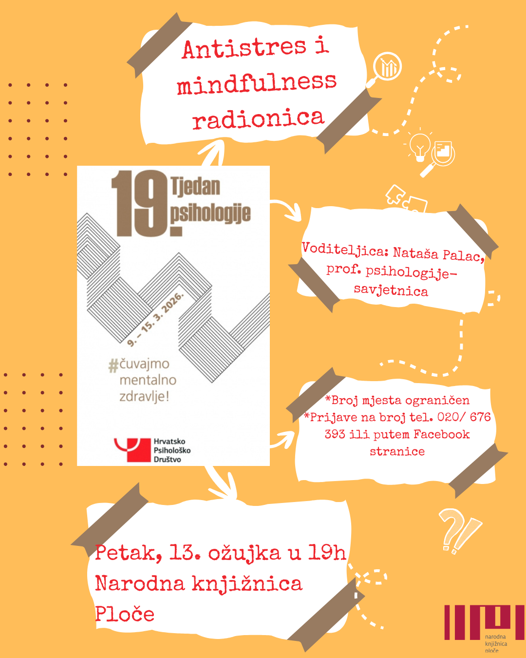 Najava radionice u knjižnici povodom 19. Tjedna psihologije u Hrvatskoj, koji se obilježava od od 9. do 15. ožujka 2026..