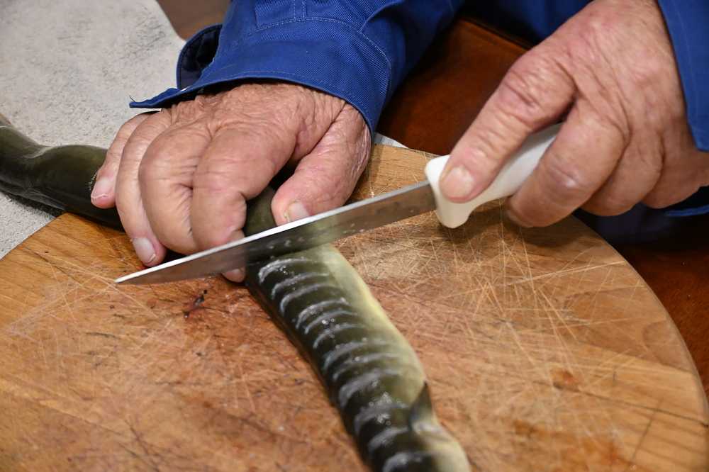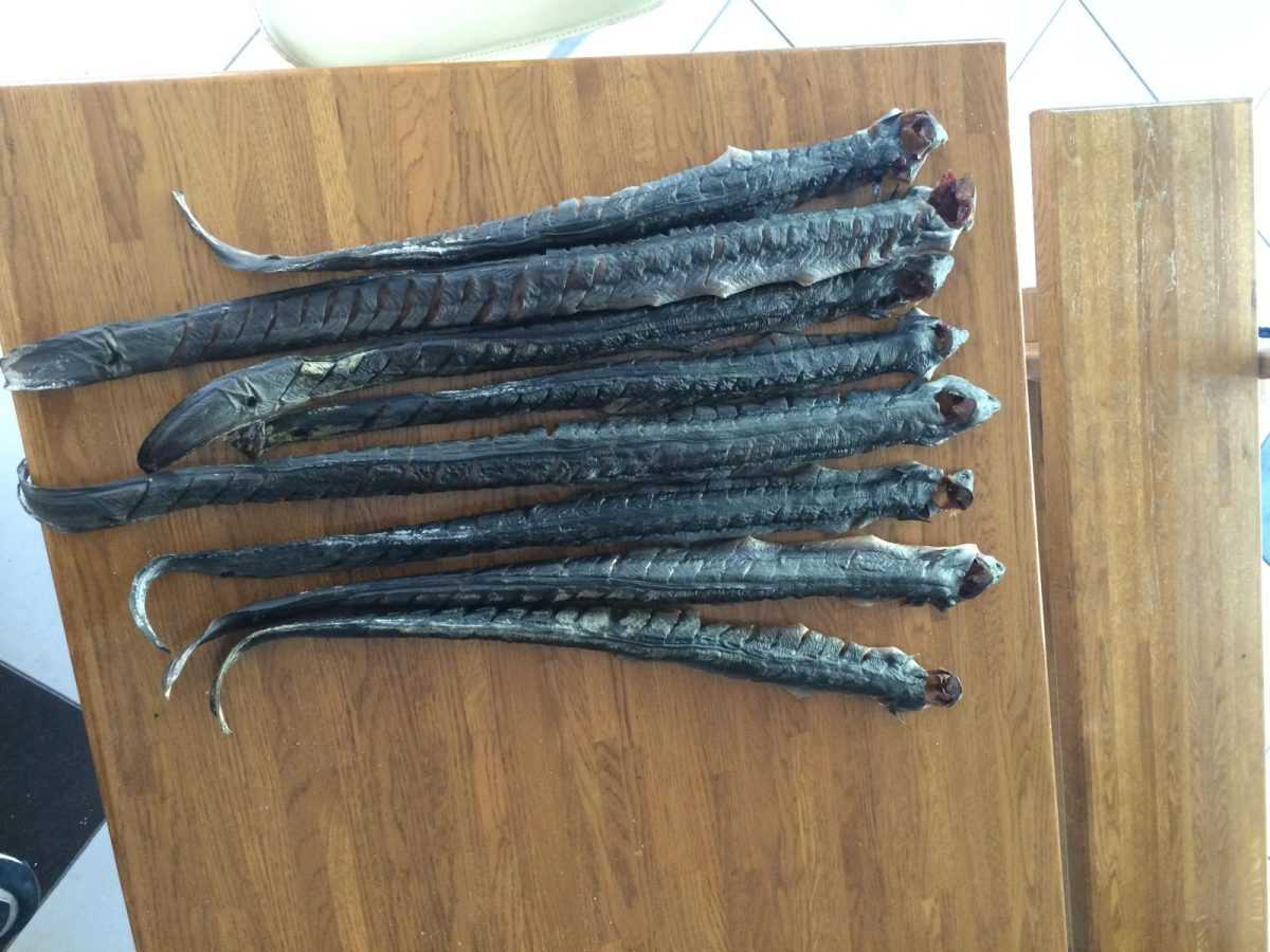 No, priča o jegulji i za njega ima posebnu simboliku u ovome vremenu iščekivanja. On je, kaže, samo nastavio tradiciju koja mu je prenesena, ponajprije od majke Danice. „Kada bi lovci ulovili veće količine ribe, nije bilo frižidera kao danas, jegulja bi se solila i sušila da duže traje. A to se radilo na dva načina. Pri način podrazumijevao je rezanje jegulje nožem svako pola centimetra otprilike da sol može što bolje prodrijeti u nju i zaštititi je od propadanja. Što je jegulja bila veća, reske su bile bliže jedna drugoj i obratno. Rezala bi se do kosti, kost se nije smjela dirati jer je ona „držala“ jegulju. Taj posao najčešće su radile žene, lovci bi lovili, a one rezale. Nakon toga bi se posolila. U drugom načinu, kada se ulov nije mogao odmah prodati niti stati u burće, jegulja bi se bacala u sol koja je bila u drvenim pritorcima, a kasnije u plastičnim posudama. Tako živa jegulja progutala bi sol i ugušila se, ali bi se zaštitila od propadanja. U drugom slučaju, za razliku od prvoga, iz nje se nije vadila jetra, slezena i stomak. Jegulja bi bila posoljena nekoliko dana, najčešće dva do tri, zavisno od njene veličine. Nakon toga stavljala bi se na dimljene tri do četiri dana, na ognjište, a onda na buru da se suši. Upravo zbog toga sve se tempiralo, čekalo se da vrijeme bude „u buri““, priča nam Ante i ističe kako se jegulja solila u njegovoj kući zadnji put prije četiri godine. Radio je to njegov sin Darko, kojemu je stalo do očuvanja ove vrijedne tradicije.