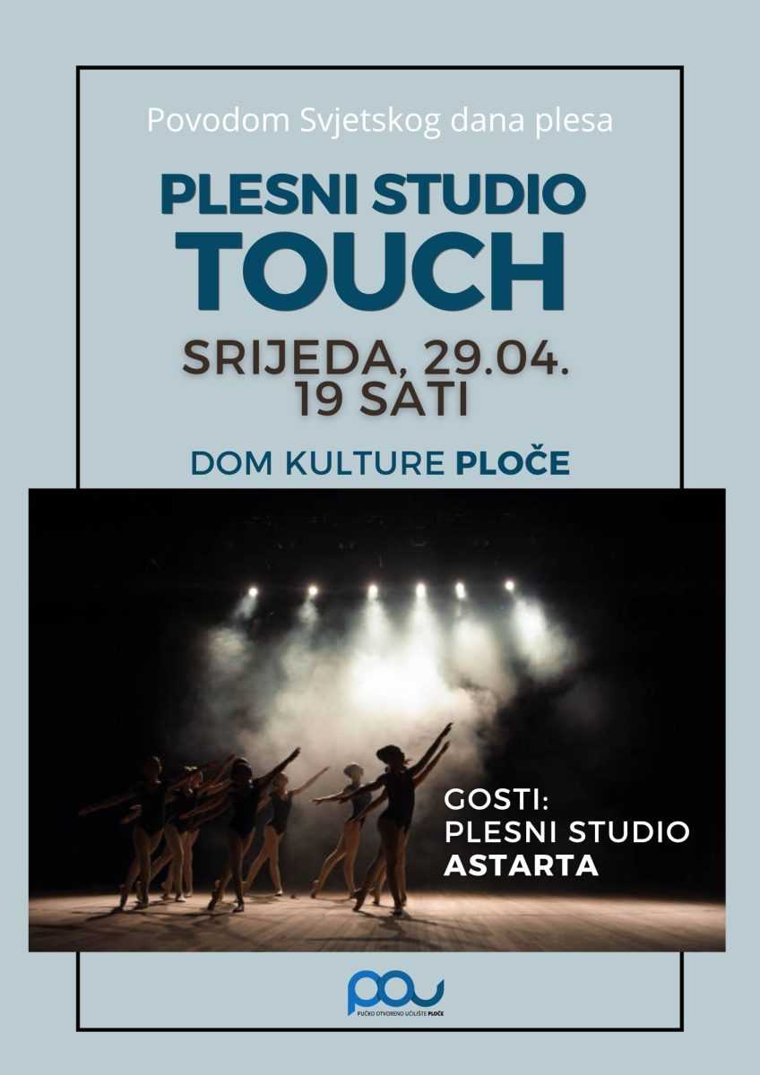 Plesni studio TOUCH priprema poseban program koji će se održati u srijedu, 29.04. s početkom u 19 sati u Domu kulture Ploče. Uz domaćine večeri nastupaju i posebni gosti iz Plesnog studija Astarta.